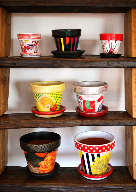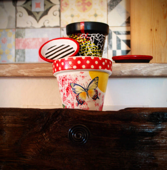 Izberi si tematski tip lončka in pri oddaji naročila kot komentar dopiši še barvno temo in kakšen specifičen motiv po želji. (Npr. rumena, modra ter metuljčki)