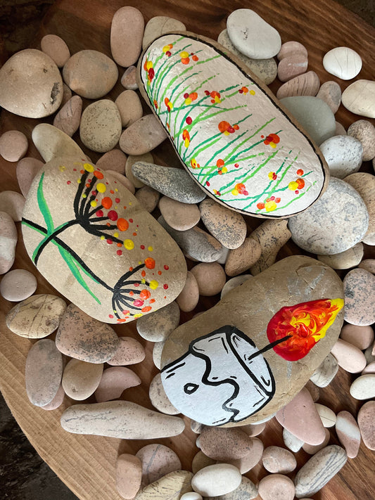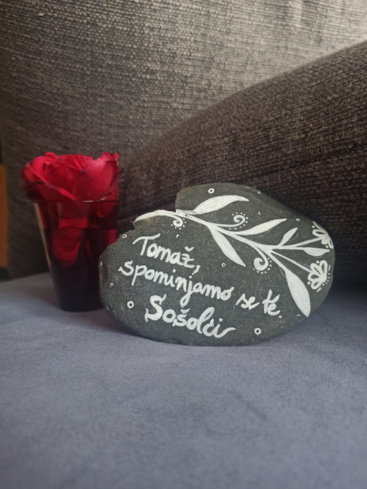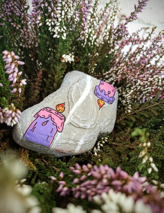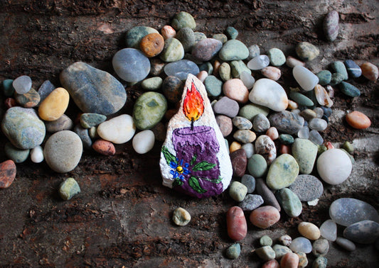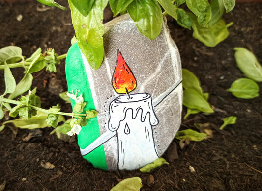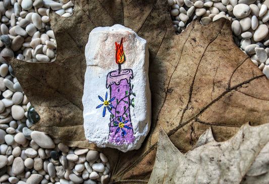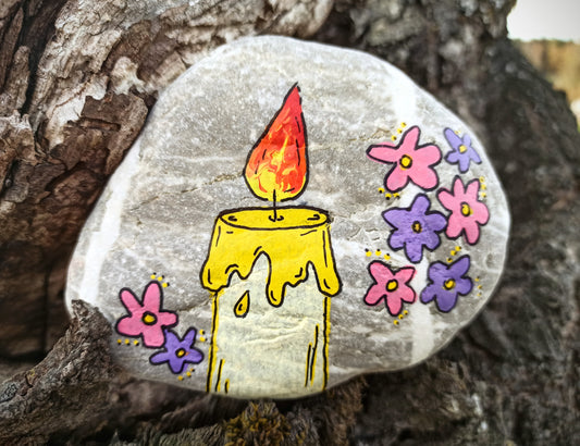Unikatna sveča slikana na kamen.🎨🖌️Izbiraš lahko med različnimi dizajni, velikostmi in barvami! Po želji lahko dodaš tudi svoje osebno posvetilo.